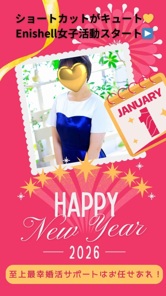 さて、結婚相談所Enishellをお選びいただき2026年元旦から活動スタートいただいている会員様の方々の他にも、スタートダッシュを決意いただいた30代ショートカットナチュラル女子さんをご紹介いたします✨